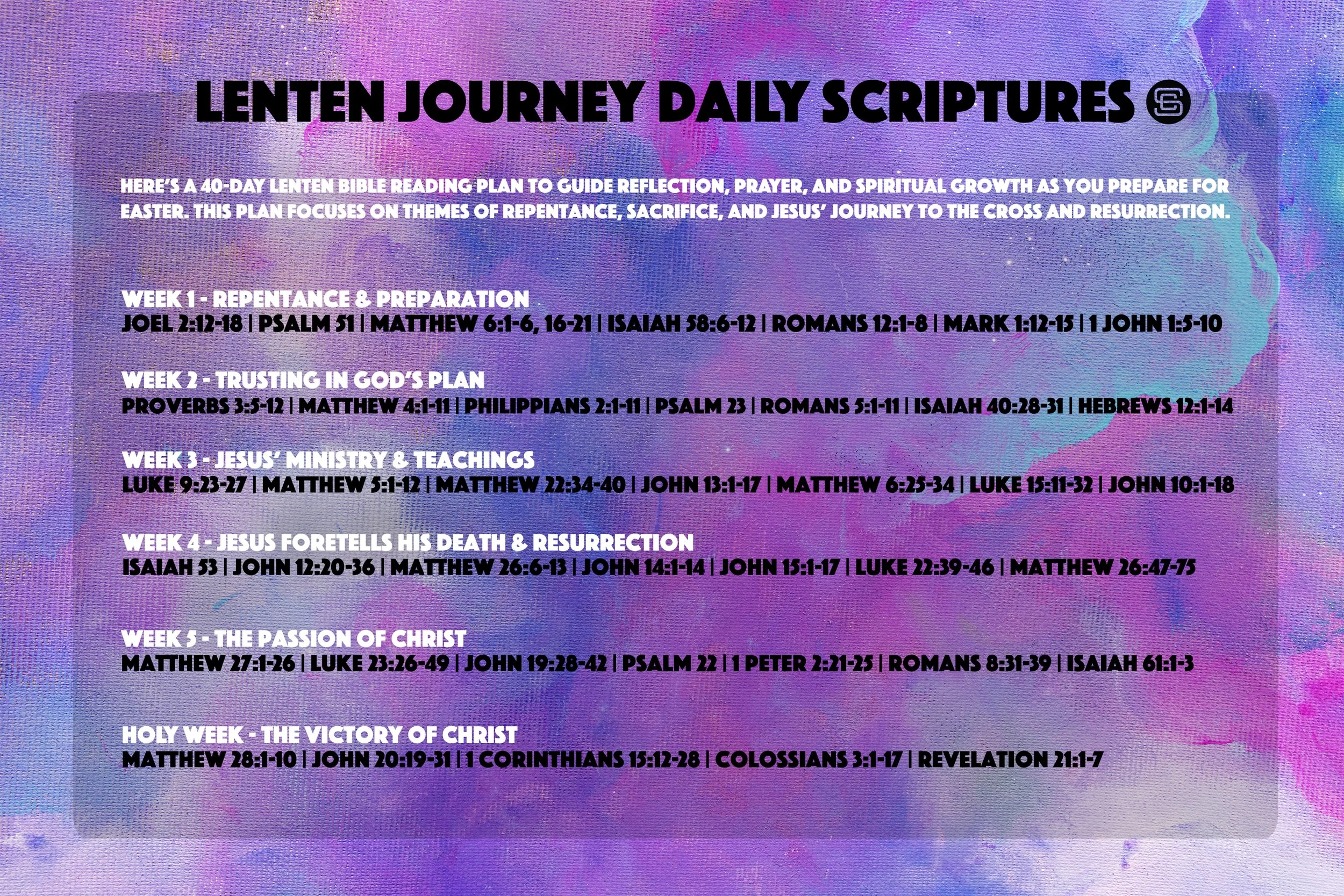 As we prepare to celebrate Easter, we first remember and join ourselves with Christ's 40 day fast in the wilderness; with this in mind, we invite you to prayerfully lay something aside for 40 days, between Ash Wednesday (February 18) and Thursday, April 2nd. As you fast, also ask God to lead you to people whom you can bless during this time period. It is also a time where we are especially focused on repentance from sin. What can you sacrifice/fast from? What area of your life can use some focused prayer? Where do you need to forgive and be forgiven? Who can you bless? Check out helpful fasting details and downloadable, daily scripture plan below:
